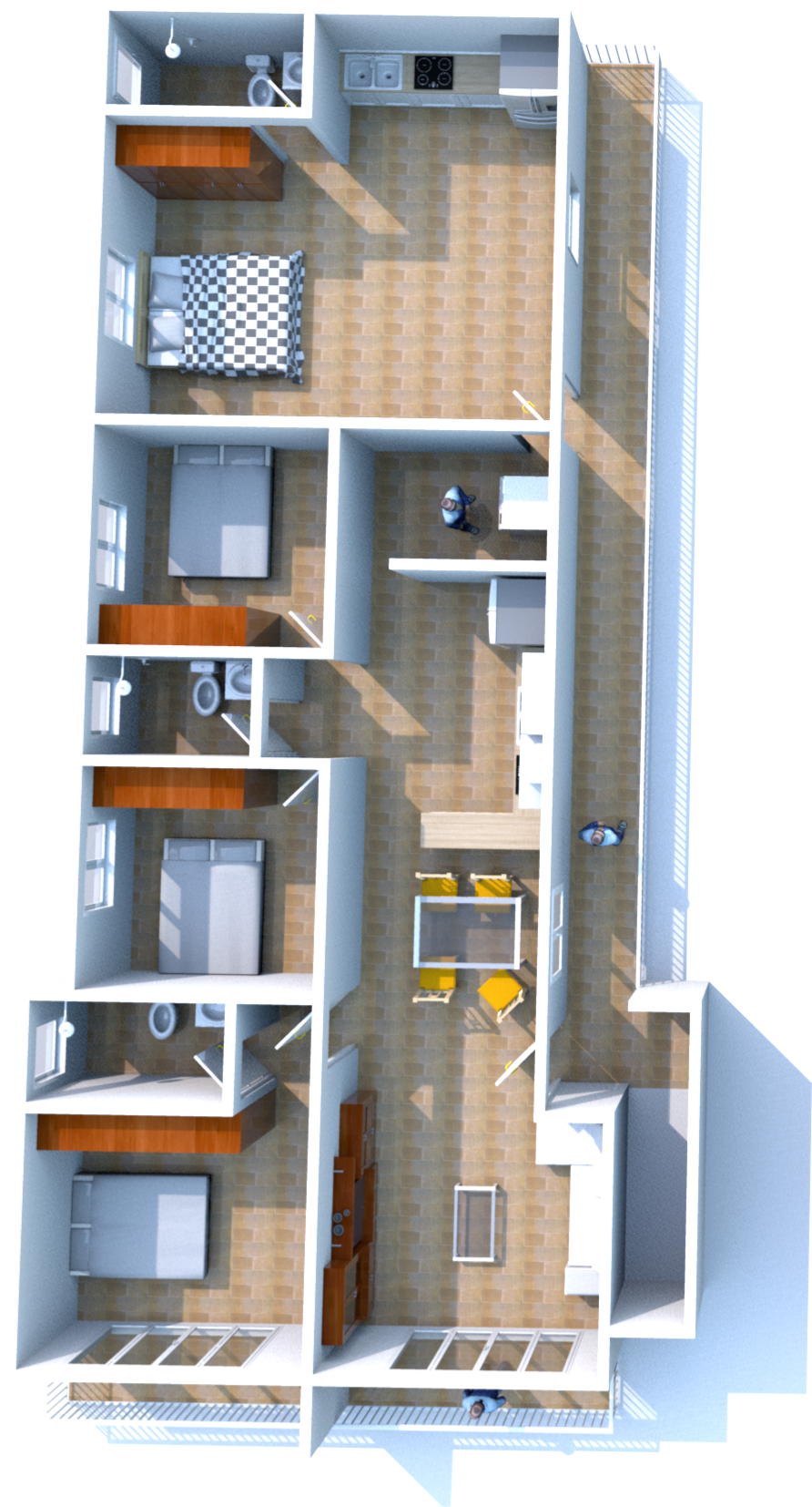 3 Habitaciones (con Closet).